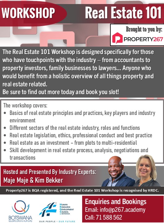 Property267 is a 100% citizen owned, Botswana based and registered company specialising in real estate training and proptech.