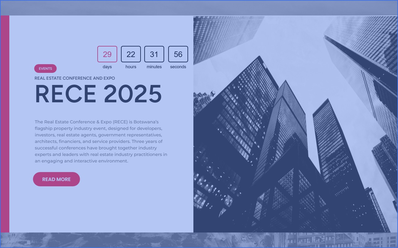 The Real Estate Conference & Expo (RECE) is Botswana’s flagship property industry event, designed for developers, investors, real estate agents, government representatives, architects, financiers, and service providers. Three years of successful conferences have brought together industry experts and leaders with real estate industry practitioners in an engaging and interactive environment.
